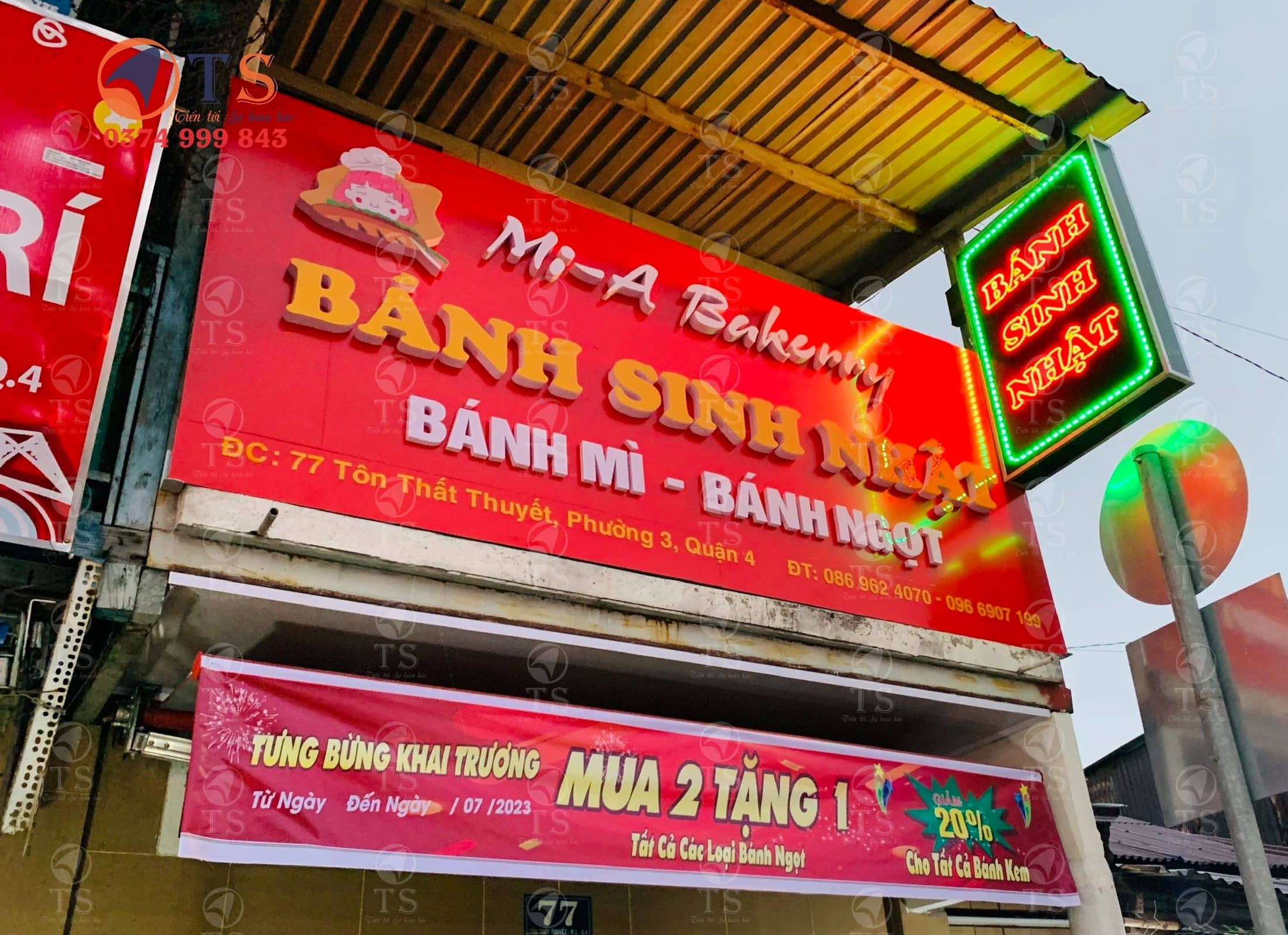 - Chất liệu Mica gắn Led lên trên chữ, lập trình chạy nháy nhiều kiểu đa dạng. Bạn sẽ có cơ hội sở hữu những tấm bảng quảng cáo chữ nổi gắn đèn Led ưng ý nhất tại Quảng cáo – Nội Thất TS.