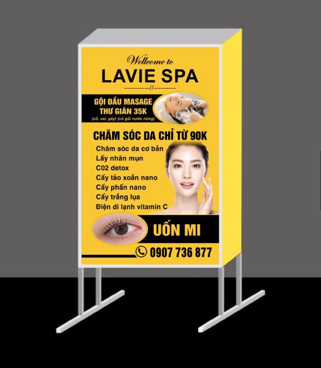 Bảng hiệu Mica hút nổi cũng có thể sử dụng phần khung bo bằng nhôm hợp kim. Có thể sơn theo màu sắc tùy chọn, chiếu sáng bằng đèn Led. Bên trong hoặc có thể dùng chất liệu decal PP in maquette rồi lên biển hoặc sử dụng công nghệ in trực tiếp lên nhựa PVC và gia công vào biển…