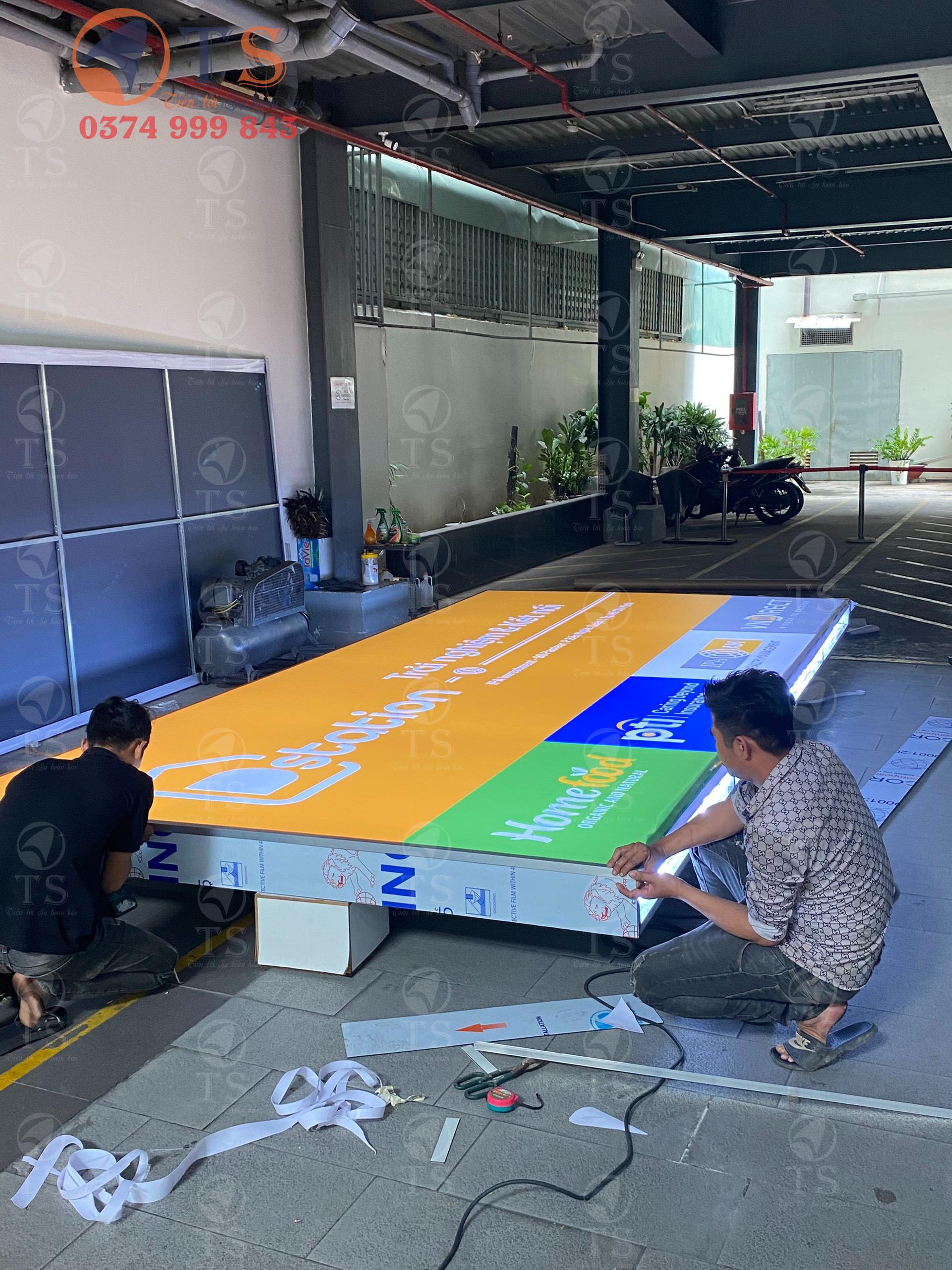 - Hộp đèn cửa hàng. Khi căng khung nhôm và bỏ đèn ở trong, hộp đèn hiflex sẽ có khả năng xuyên đèn.