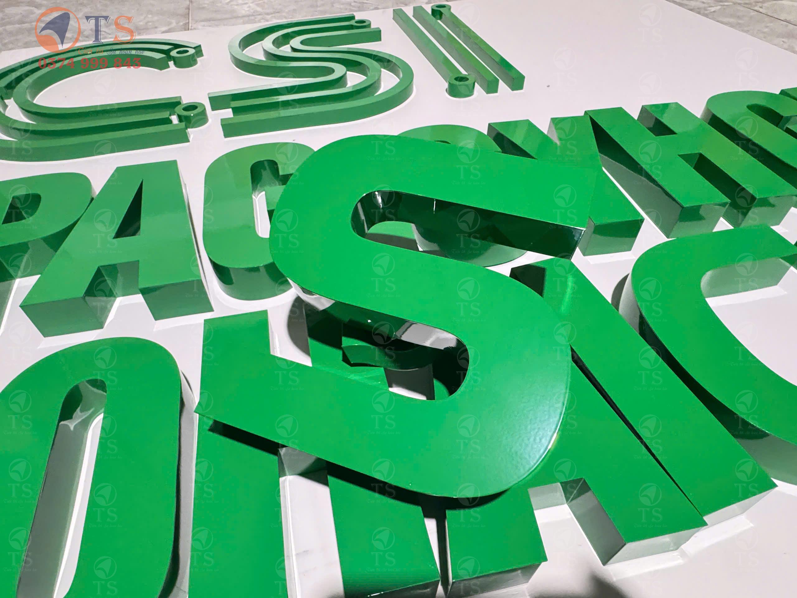 ✔ Chữ nổi inox bo sắc nét, màu xanh sơn tĩnh điện công nghệ hiện đại